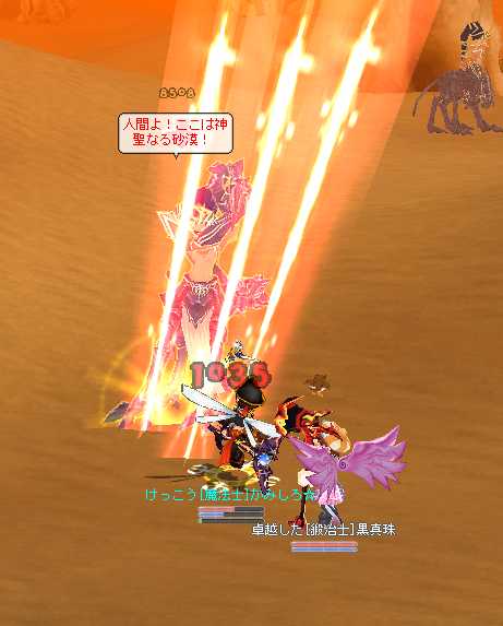 やっぱりこのシリーズはオモシロイなぁと思ってしまうほど良い出来です。 でも今回の主人公?の職業はなんと「盗賊」! しかも純粋な戦士系ユニットよりも強いΣ(´□`;)反則ですw 一日一話すすめられたらイイナ、などと思いながらプレイ中であります( ̄ー ̄ゞ [sealの話] ここ一週間ほどまともに狩りしてませんでした。 なんかG化にばっかり意識がいってたんですけど、いい加減ペットのエサがやばい! ってコトで久しぶりにソイルに出陣(`・ω・), この世界での一番の美人さんじゃないでしょうか。 左右を見回すモーションが妙にカワイイです。 ホントは見返り美人なSS撮りたかったんだけど、このオネーサマ。妙にカンが良くていらっしゃるので、索敵範囲に侵入しちゃうと高確率で寄って来ますΣ(´□`;) このオネーサン狩ることにしたのはもちろん!「ホクマの杖」目当てです。 でも出にくいコト山の如しらしいので、おそらく長期戦になるんだろうなー(´・ω・) がんがんサカナが消費されていきます。 オネーサマの攻撃エフェクト→ 腕を下から上へ振り上げての爪攻撃です。 衝撃波が天まで昇ってますね♪ ( ´△`)・・・。 結局収穫はルビー5、ダイヤ2、APブレス書でしたっ。 APブレス書どう処分したら(ノ∀`) ってなコトで今日はここらへんで(((((*'-')ノシ